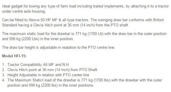 Swinging Draw Bar (Normal Duty) HFI – 15