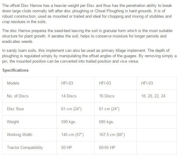 Offset Disc Harrow HFI – 03